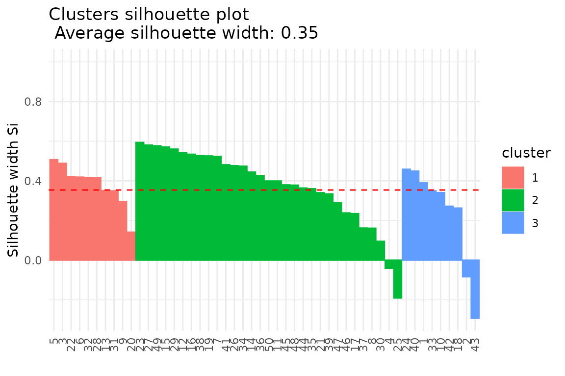 plot(x = cc_fuzzy, data = USArrests, type = "silhouette")## $plot